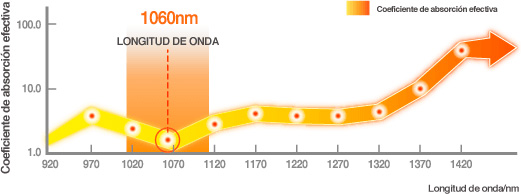 El láser de longitud de onda de 1060nm afecta particularmente a las células grasas.