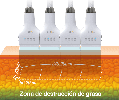 El láser de 1060nm de longitud de onda calienta la capa adiposa a una temperatura entre 42 y 47°C. La capa adiposa se elimina a sí misma una vez que está expuesta a altas temperaturas. Los adipocitos necrosados se desechan del cuerpo a través de un proceso metabólico que deja un efecto adelgazante natural.